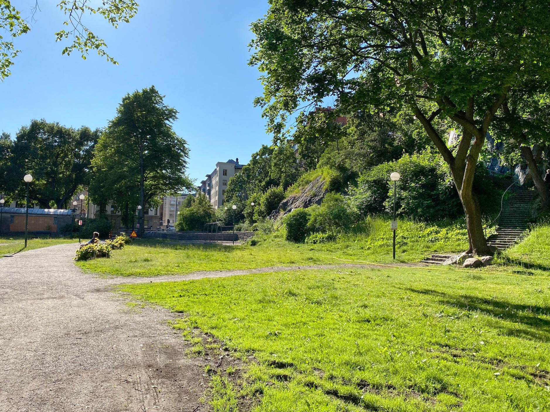 Här i Stigbergsparken kommer den nya entrén till station Sofia att ligga.