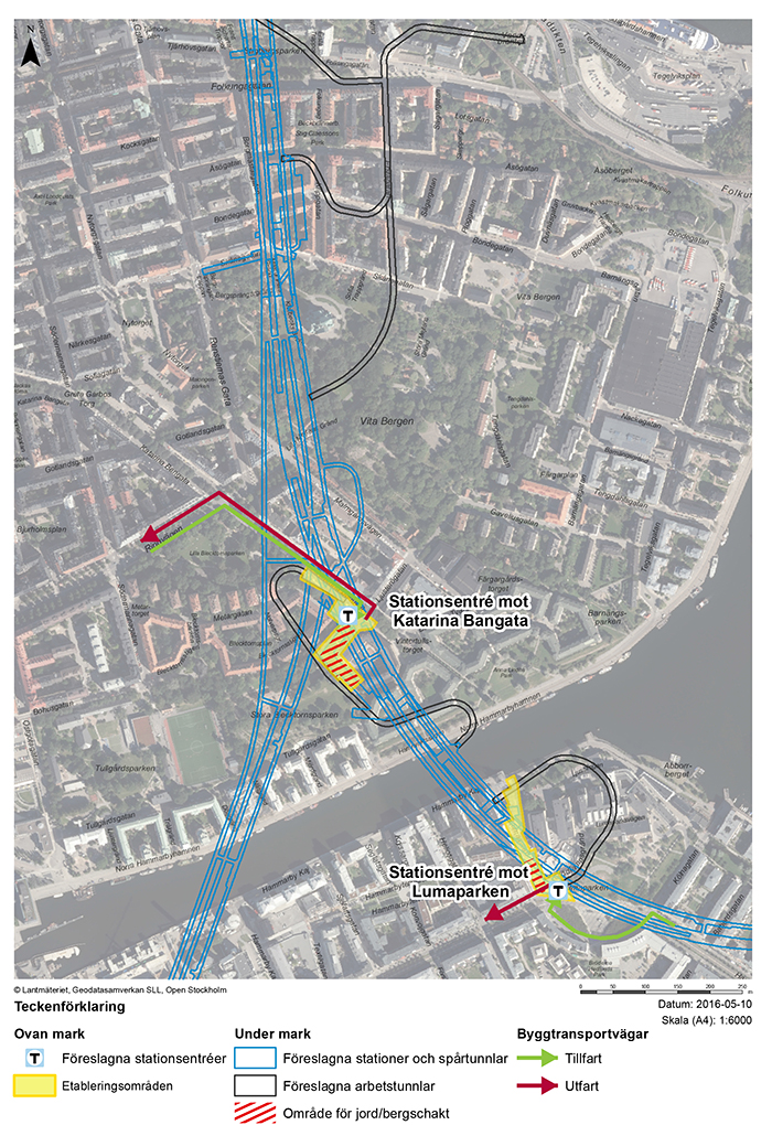 I vintras visade provborrningar att Färgarplan fick avfärdas på grund av att berget låg för djupt och då återstod alternativet Katarina Bangata. Projektet valde då att lyfta frågan på nytt och se om vi kunde hitta andra alternativ. Vi ser över om vi kan använda station Sofias arbetstunnel vid Londonviadukten. En annan möjlig lösning är en arbetstunnel vid Luma i Hammarby sjöstad.