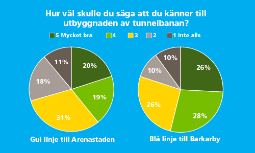 Att så många som möjligt ska känna till utbyggnaden är viktigt inför årets planerade byggstart. Undersökningen visar att var femte tillfrågad i Barkarby och nästan var tredje längs med Gula linjen inte känner till utbyggnaden väl.