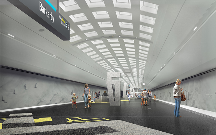 Nu finns nya visionsbilder på stationerna Barkarby och Barkarbystaden, som ska byggas när Blå linje förlängs till Barkarby. Stationernas utformning skiljer sig åt för att göra det enkelt för alla som reser med tunnelbanan att känna igen sig.