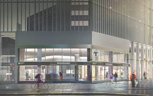 The eastern entrance way will be situated in the ground floor of a new building. Image: Region Stockholm/White architects
