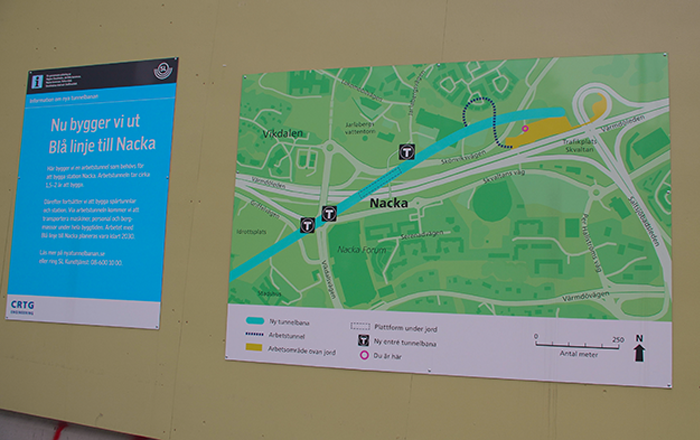 Arbetet med nya tunnelbanan börjar bli en vanlig syn för allt fler stockholmare. Arbetstunnlar sprängs och arkeologiska utgrävningar pågår. Alla arbetsområden för nya tunnelbanan kommer att se ungefär likadana ut, oavsett om de ligger i Järfälla, Nacka, Solna eller Stockholm. Planken har en gulgrön nyans och pryds med skyltar som berättar om vad det är som händer på området. Att planken ser ut som de gör är ingen slump.