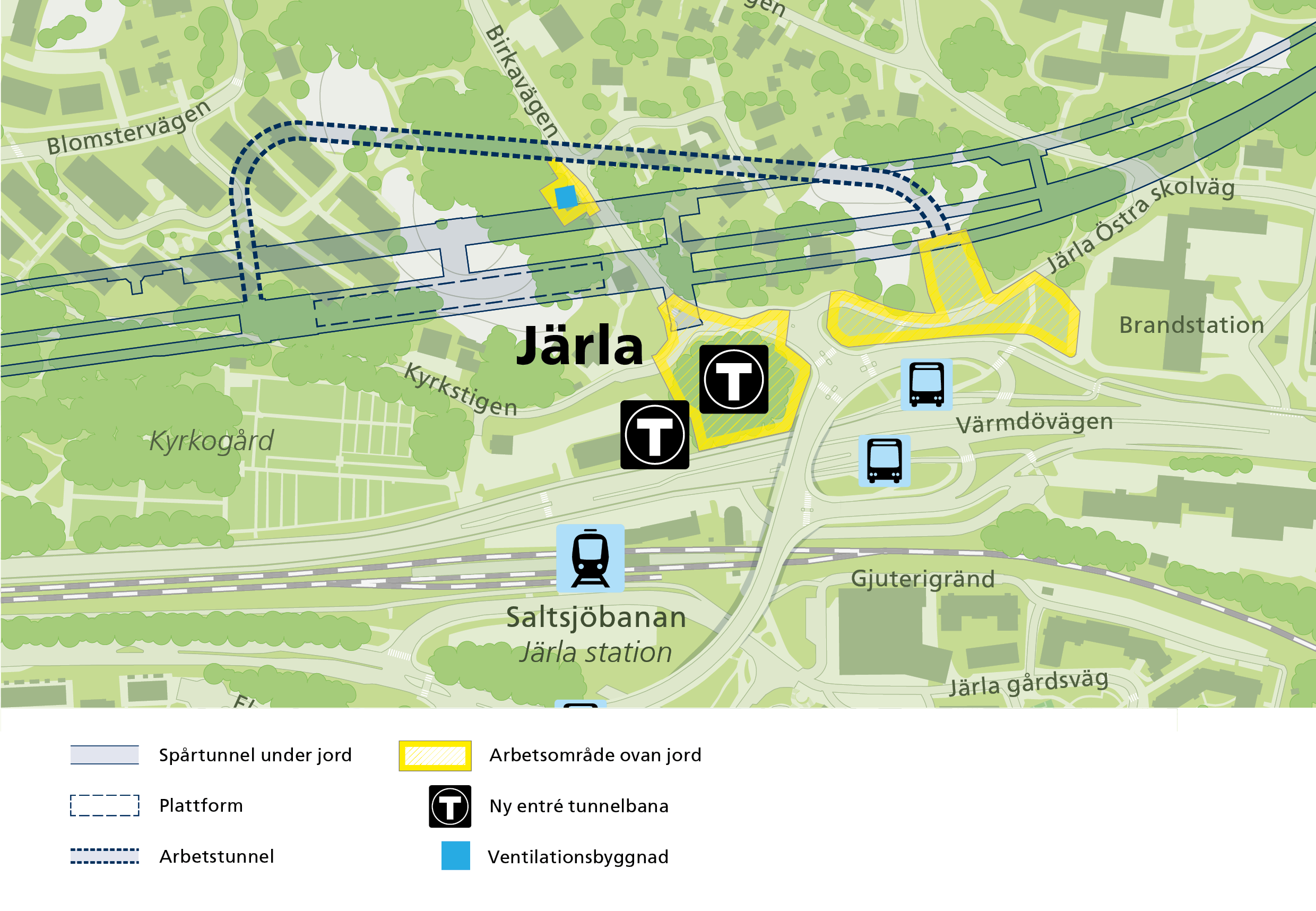 Tunnelbanans arbete i Järla: jul och nyår 2023