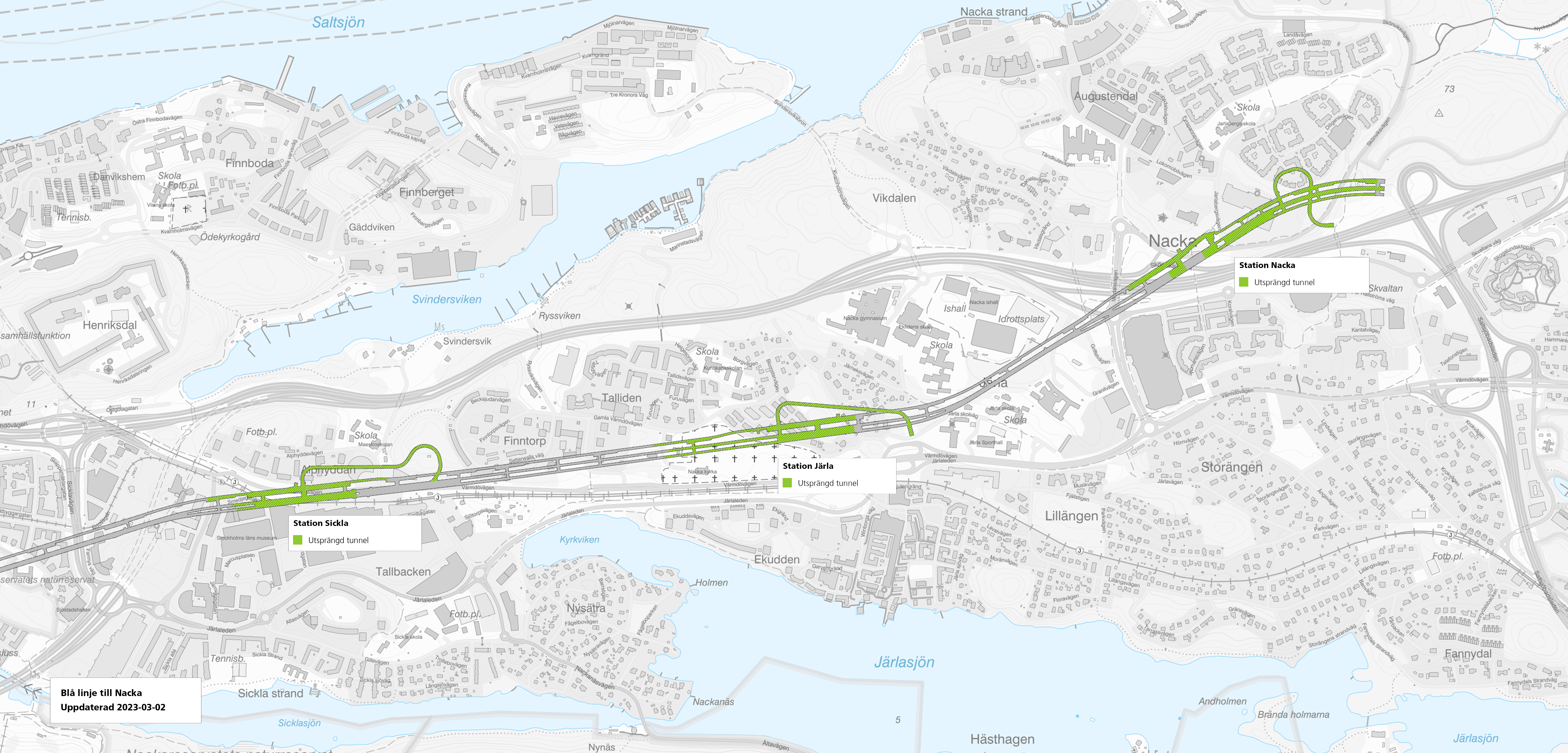 Arbete med tunnelbanan mellan Sicklavägen och Sickla kanal