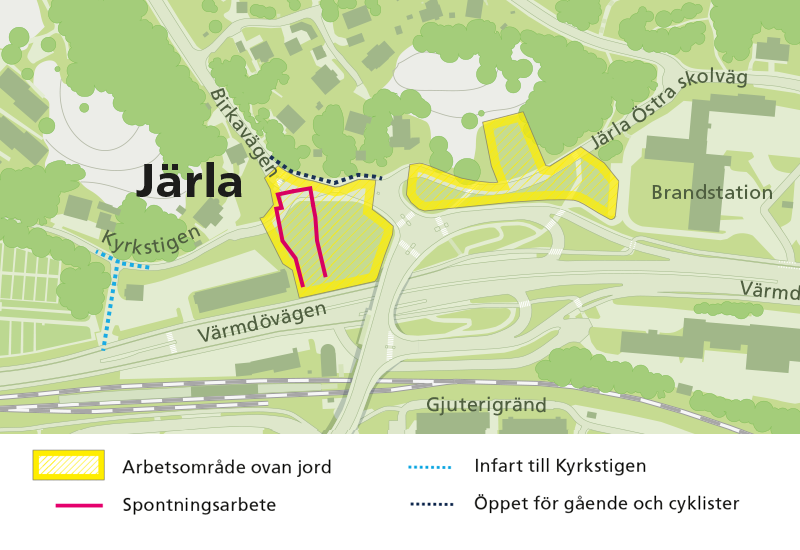 Arbetet ovan jord i Järla görs på helgfria vardagar klockan 07–19 och omfattar flera arbetsmoment under resten av 2022 samt 2023.