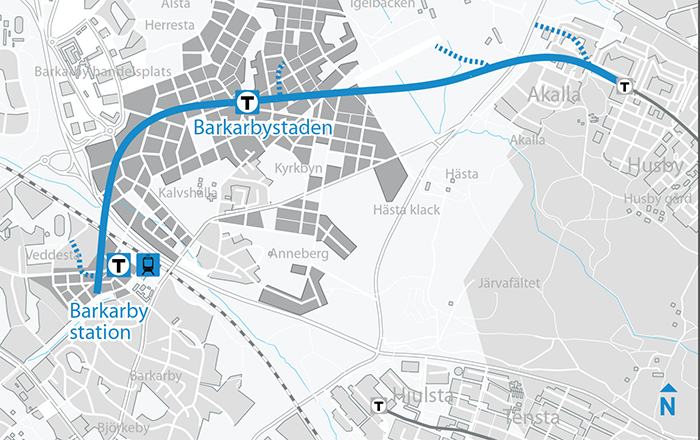 Utbyggnaden av Blå linje mellan Akalla och Barkarby förenklar arbetspendling för många genom nya resmöjligheter och kortare restider. Barkarby blir en viktig knutpunkt med flera trafikslag för alla som reser kollektivt. Trafikstart för tunnelbanan december 2027.