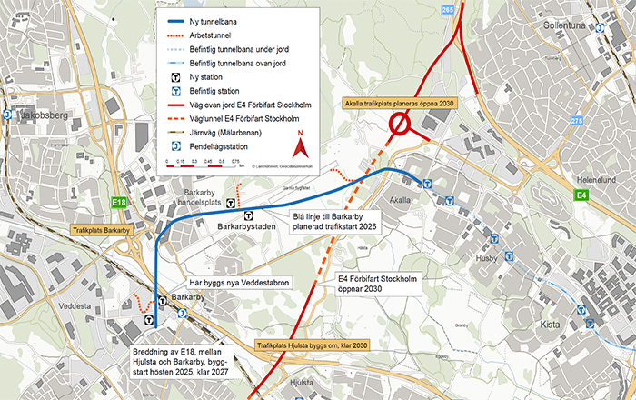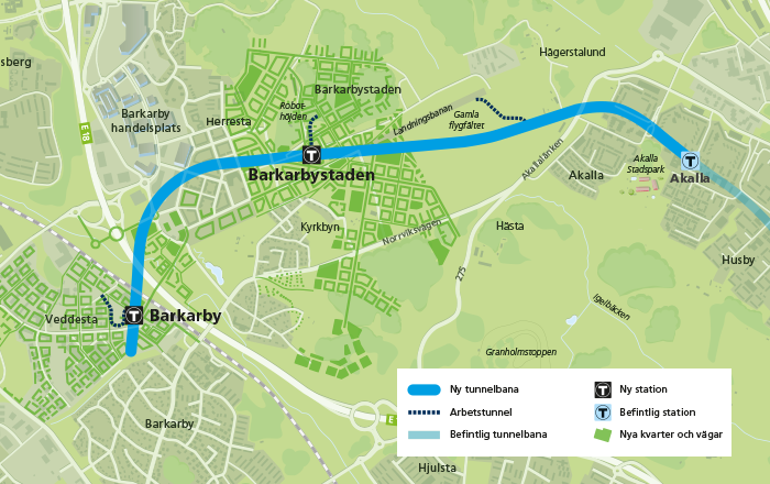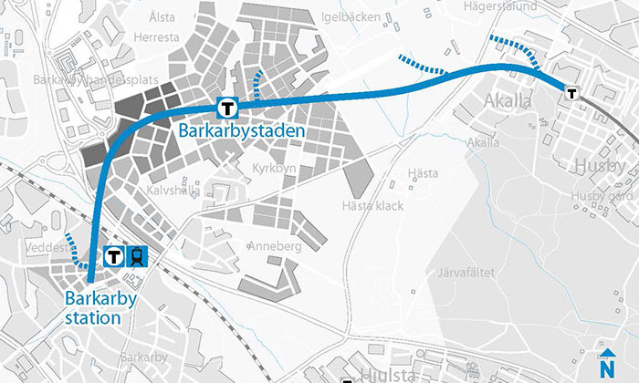 I nordvästra Stockholm förlängs tunnelbanans Blå linje från Akalla till Barkarby. En sträcka på fyra kilometer med två nya stationer. Station Barkarbystaden byggs på Barkarby gamla flygfält. Station Barkarby byggs vid Barkarby pendeltågsstation, intill Veddestabron.