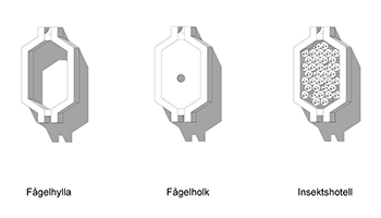 – Vi planerar för tre olika sorters bo, som ska passa de arter vi vill ska flytta in. En art som vi inte vill främja är ringduvan, som det redan finns många av i Stockholm. Därför ser vi till så att boplatserna vi bygger är för små för dem, säger Paula Lindström.