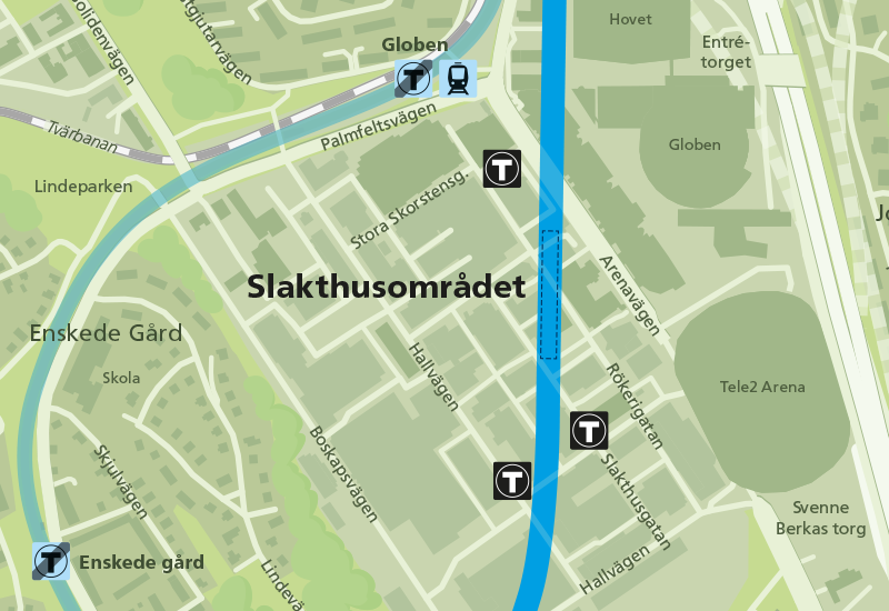 När tunnelbanan kommer från Södermalm till den nya plattformen på Gullmarsplan ligger spåren så djupt att angöringen till Globen och Enskede gård blir alldeles för brant. Därför behöver Globen och Enskede gård ersättas av en ny station under jord – Slakthusområdet. Läs fler frågor och svar om Blå linje till Söderort.