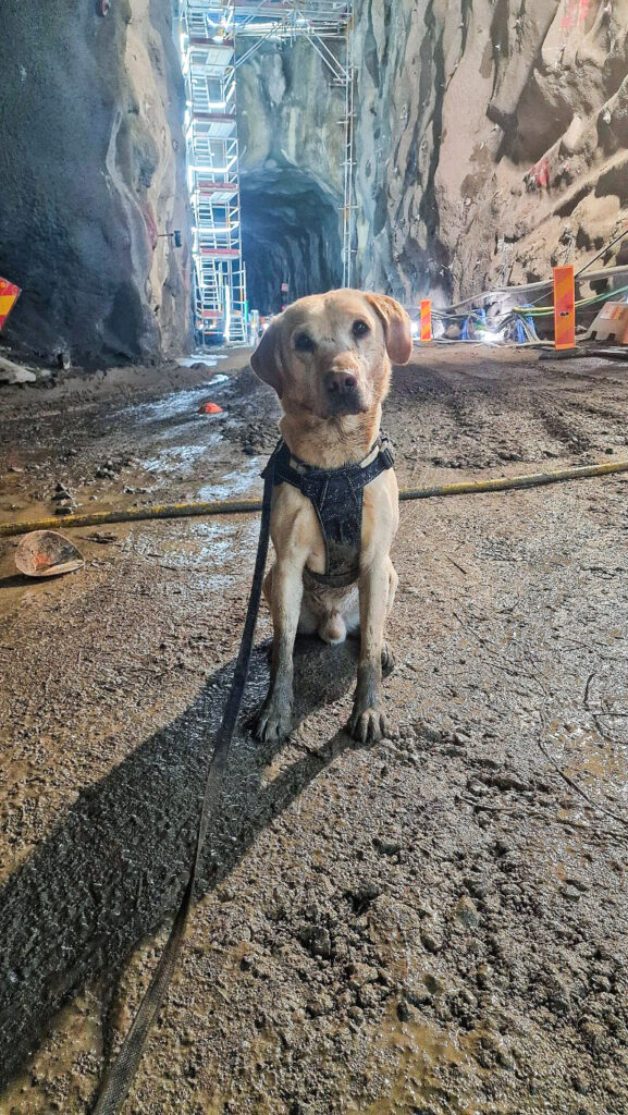 Hundarna arbetar med att söka efter gamla sprängämnesrester och säkerställa att området är tryggt att arbeta på. Labradoren Beppe har jobbat som explosivhund i sex år och kallas till tunnelbanebygget några gånger om året för att sniffa rätt på gammalt sprängmedel. I veckan har han arbetat tillsammans med sina hundkollegor Mimmi och Pi i utbyggnaden av tunnelbanan på sträckan Akalla-Barkarby.