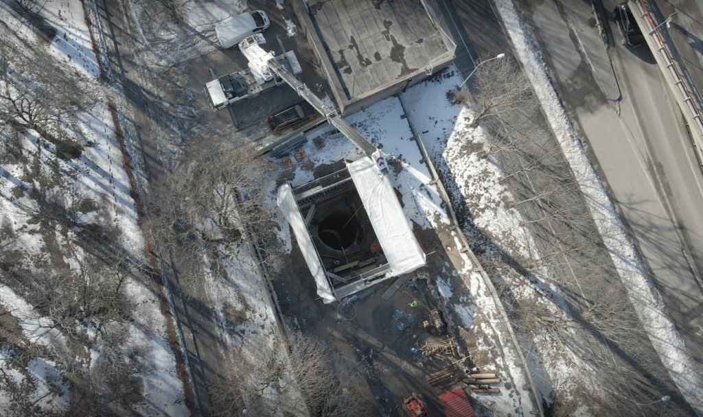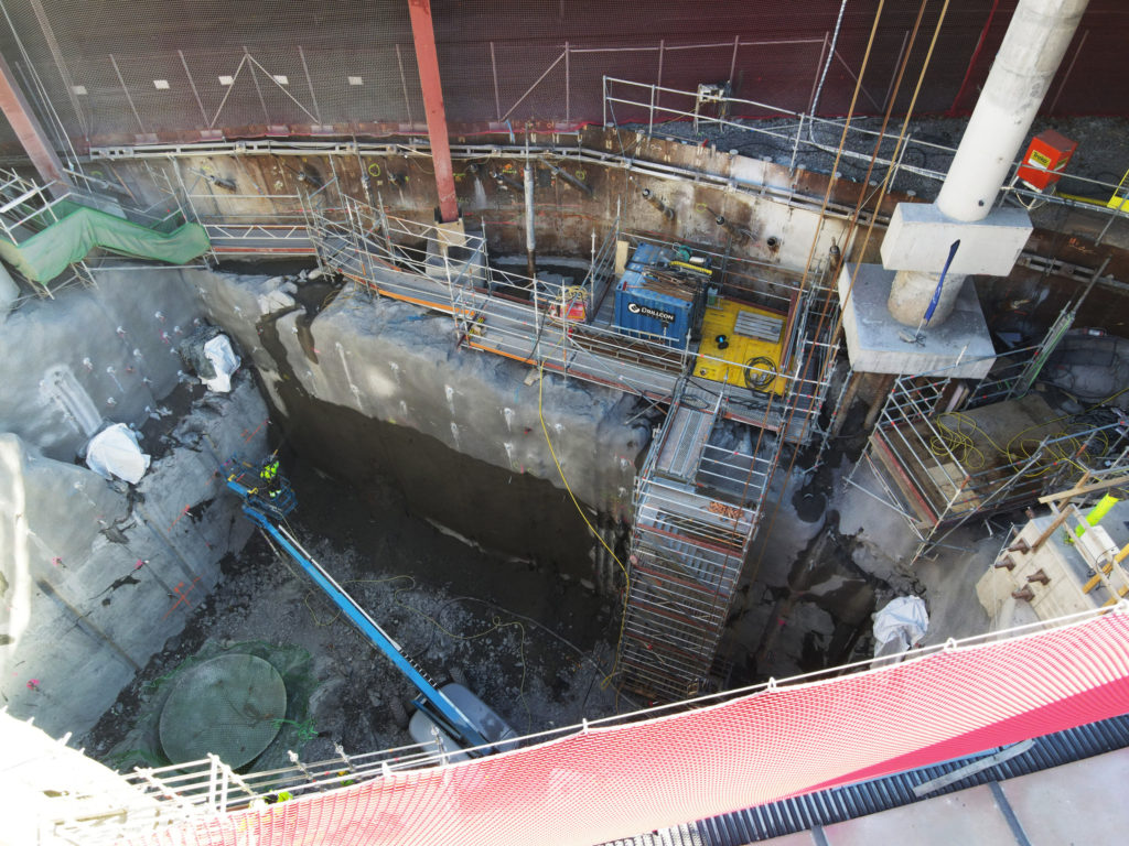 Ventilationsschakt mellan tunneln och Koleraparken. I Koleraparken byggs ett ventilationstorn. Foto: OHLA Sverige.