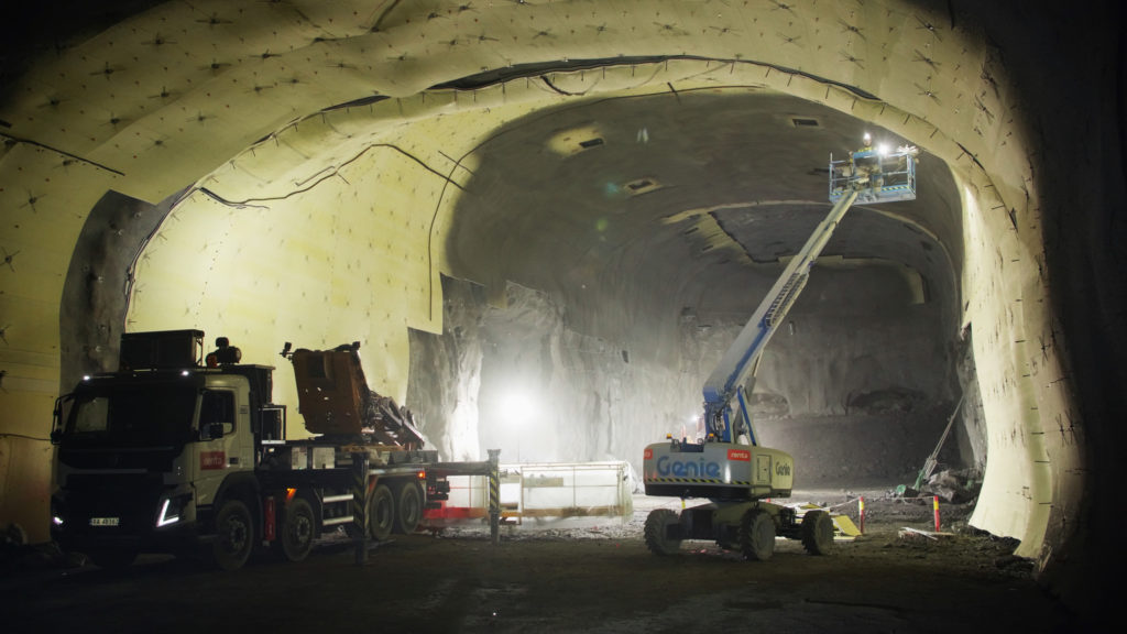 Just nu borras det 30–40 meter långa hål, där det ska in rör som med hjälp av stora kylaggregat fryser ner berget. Senare i år, när berget frysts ner, kan man börja spränga tunneln och under nästa sommar har hela tunneln sprängts ut.